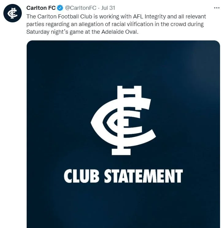 Another week and another incident of racial vilification against an AFL player. On Saturday evening Gold Coast Football Club put out a statement saying that they condemned “comments” against one of its players, finishing with the hashtag #RacismItStopsWithMe.